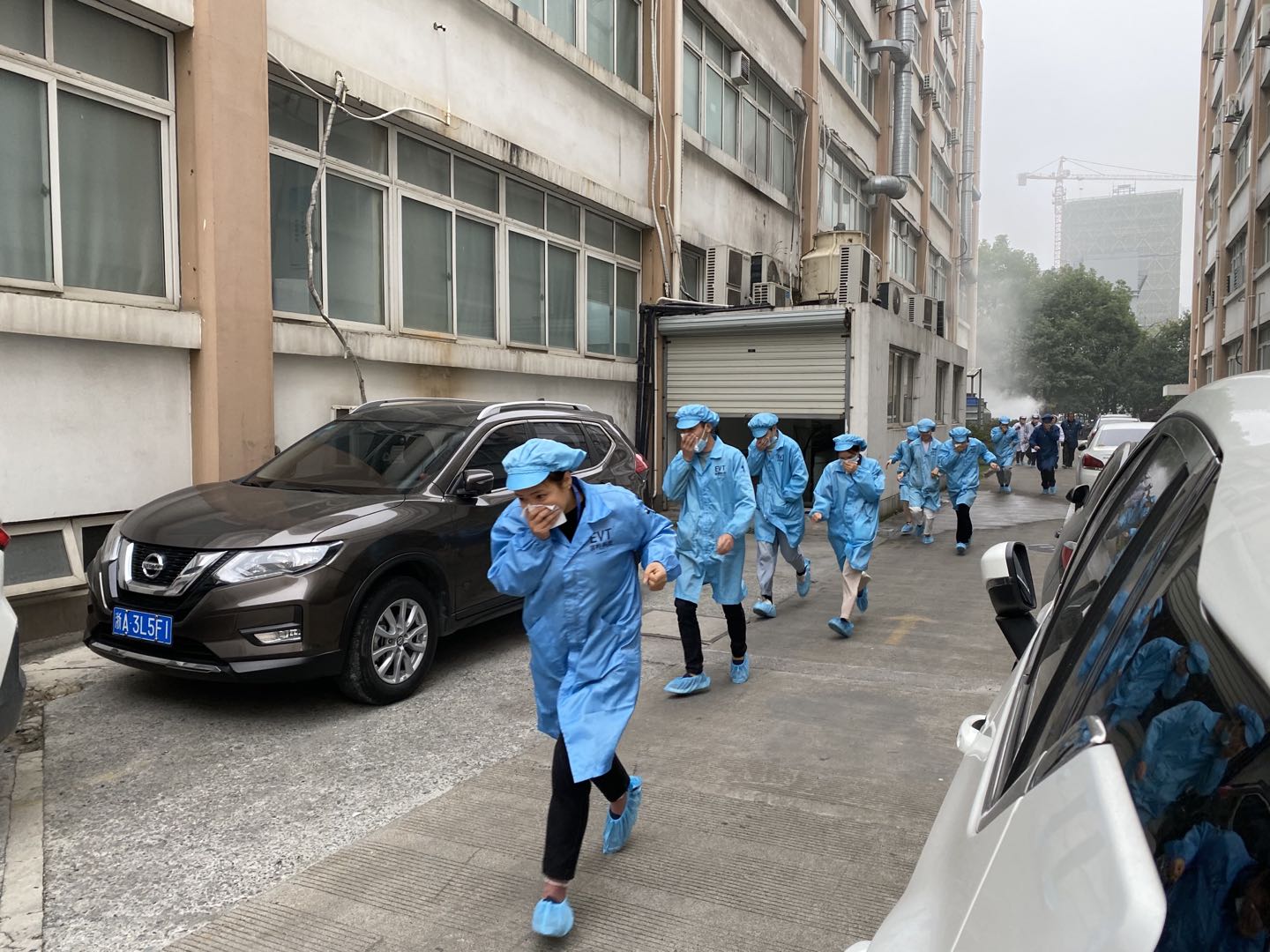隨著警報響起,員工們紛紛有序地從辦公區域向指定安全區域轉移。
