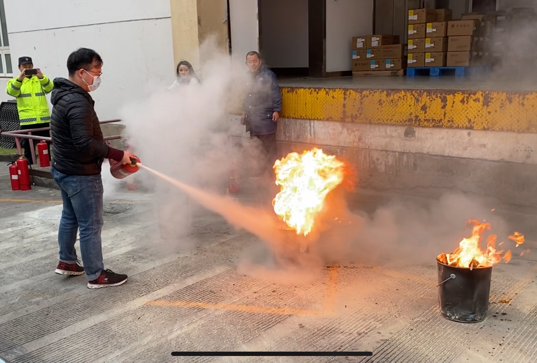 員工們在完成學習、掌握滅火器的使用技能后,紛紛上前進行演示。