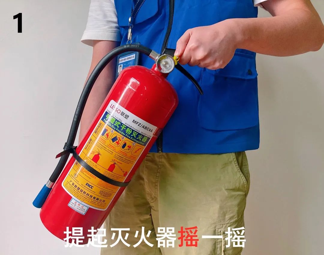 在錢隊長的細心指導下,大家學習并掌握了滅火器的正確使用方式,牢牢記住了滅火器使用的四字訣“搖、拉、握、壓”。