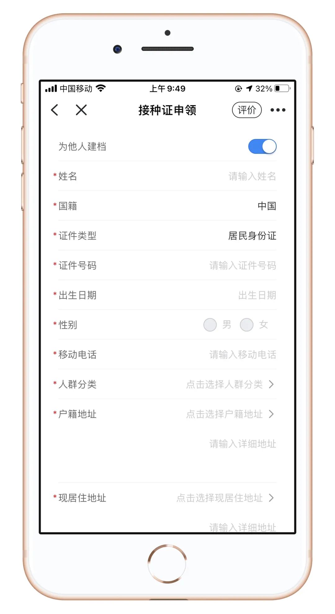 在跳轉頁填寫成人基本信息、戶籍地址、現居住地址、工作單位名稱后,點擊【提交】進行申領,會顯示建檔成功。申領完成后可切換至【我的】標簽頁,點擊【我的申領】進行查看已申領的電子接種證。